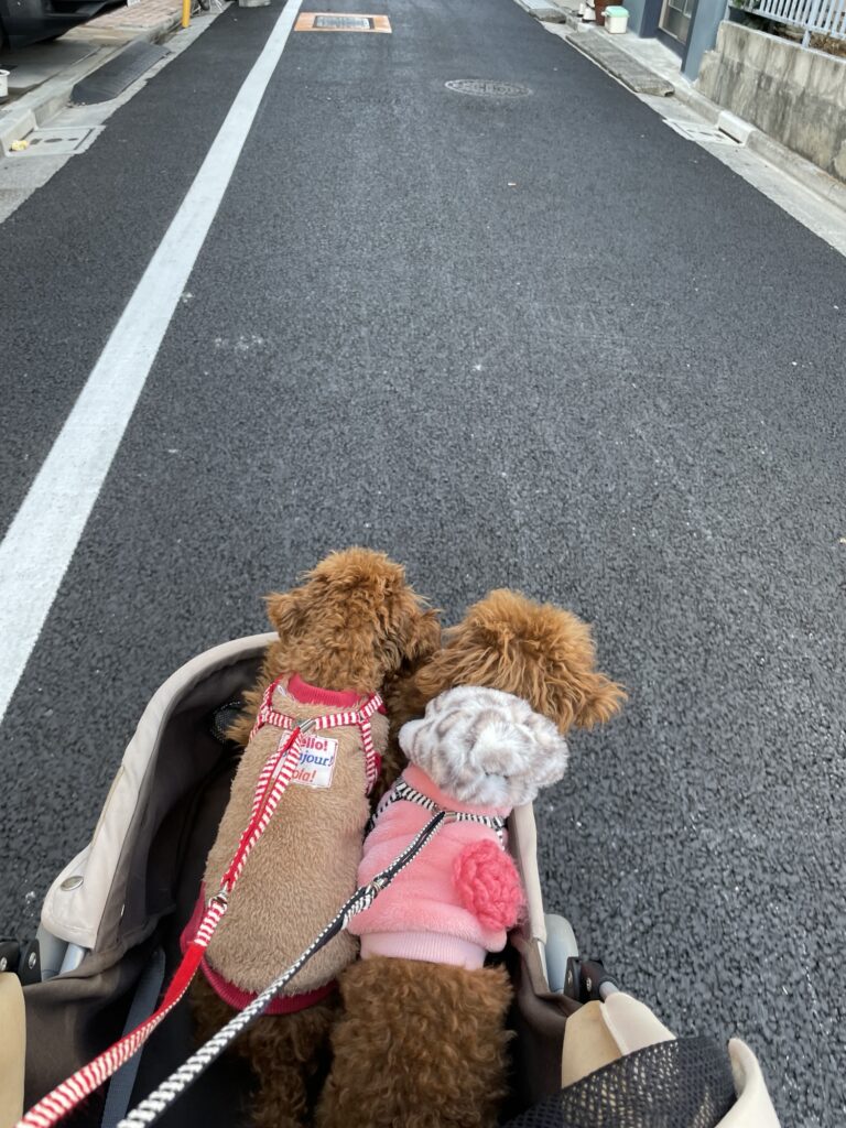 2頭一緒だと散歩ではなく、ただピョンピョン好き勝手に走っている、だけです。